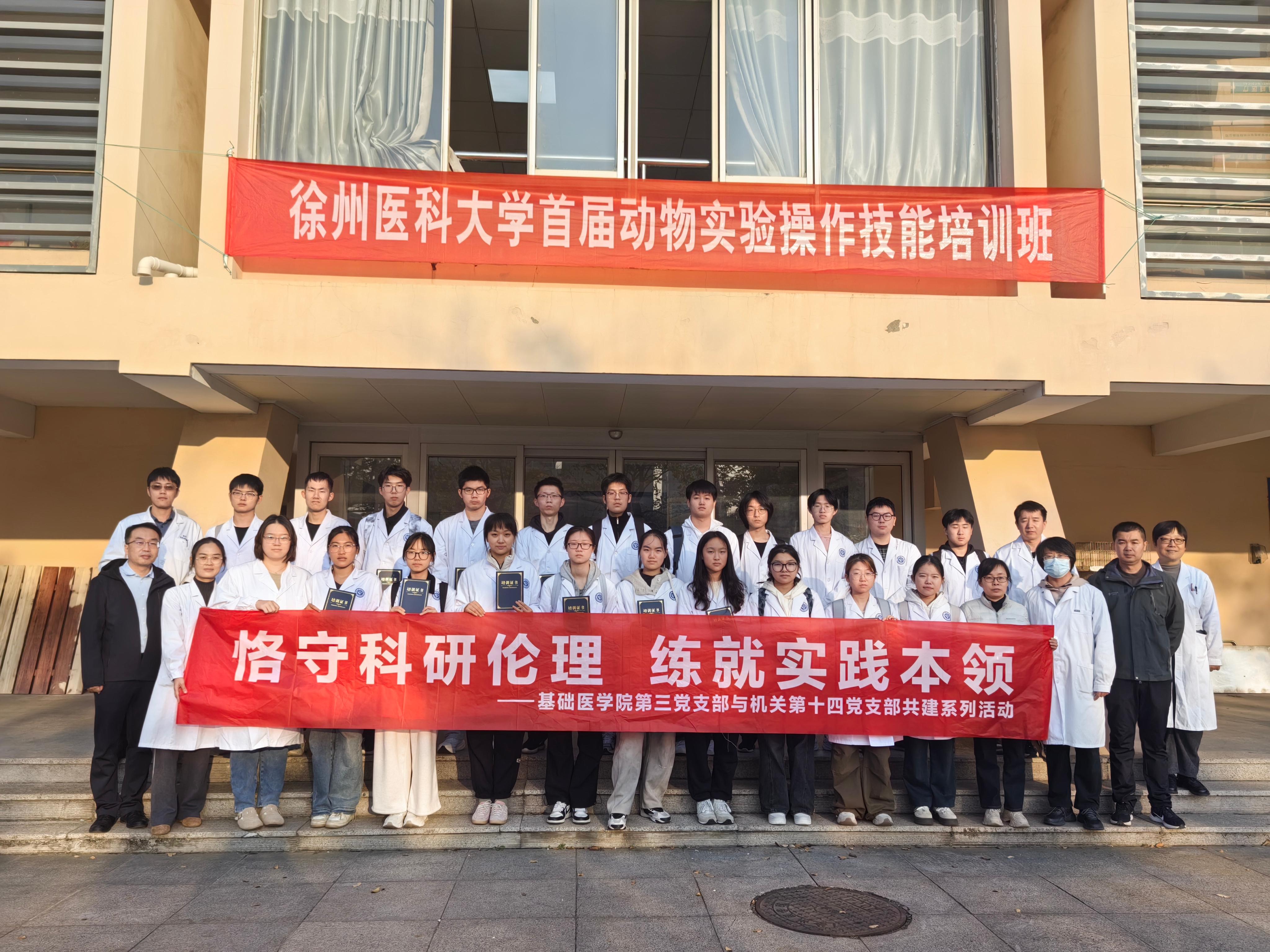 近日,徐州医科大学机关第十四党支部与基础医学院第三党支部联合开展的党建共建项目“党建引领 科教融合—实验动物伦理与科研技能提升”顺利完成结项。项目自启动以来,始终以党建为核心纽带,聚焦本科生科研能力培养痛点,通过支部协同、资源整合、系统培训,创新构建“党建+科研服务+学生培养”融合发展新模式,在人才培养与科研服务协同育人方面取得显著成效。